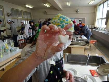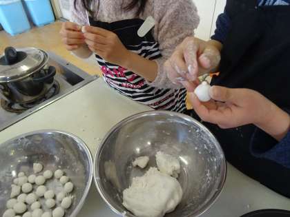 白玉だんごの形を工夫して作るグループもあり、子ども達はとても楽しんで実習をしていました。