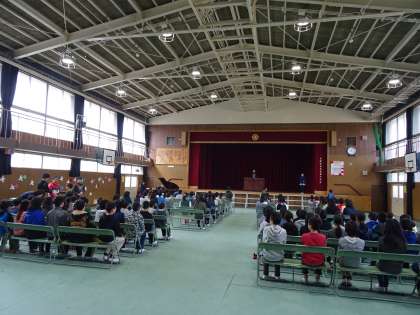 卒業式の予行以外では一緒に練習するのは今日が最後ということもあり、子ども達は真剣に取り組んでいました。5年生も6年生もお互いにがんばる姿を見て、最後までがんばっていました。