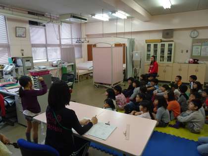 今日は4年生で視力検査がおこなわれました。一人ひとり検査をしているときに待っている子ども達は、友だちの邪魔にならないようにとても静かに待っていました。
