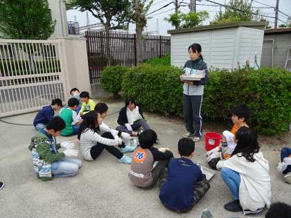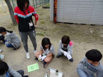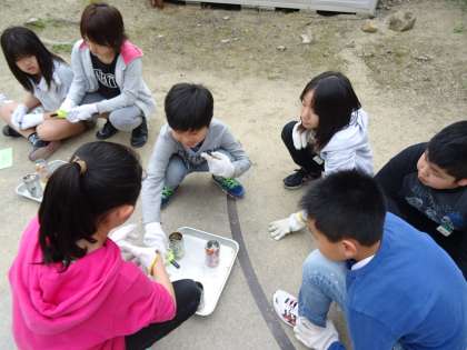 わりばしを燃やした時の燃え方を観察するため、外に出て実験をしました。