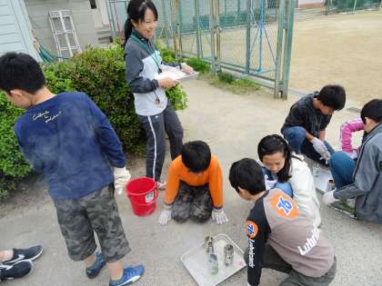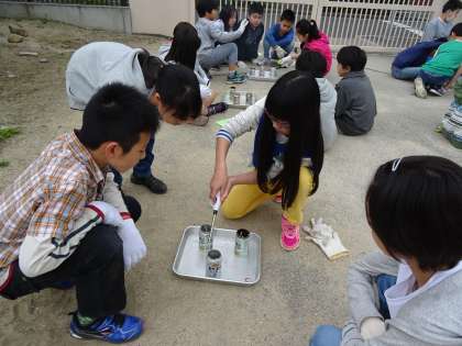 子ども達は班にわかれて実験をし、協力して活動していました。