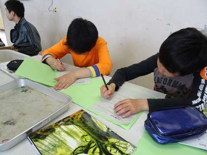 実験をしたあと、理科室に戻って実験結果や感想を書いて学習のまとめをしました。