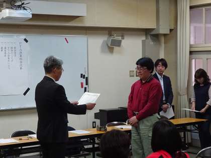 そして、28年度のPTA活動の中心となって活躍してこられた旧役員、実行委員のみなさんには感謝状がおくられました。特に長年にわたり、加美東小学校を支えてくださった会長さんには大きな拍手がおくられていました。