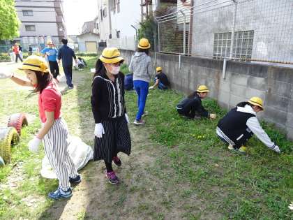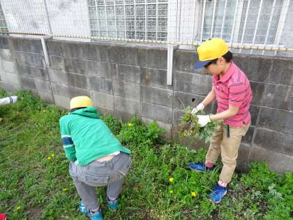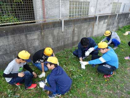 付き添いで行った先生達も子ども達と一緒に清掃活動に励んでいました。