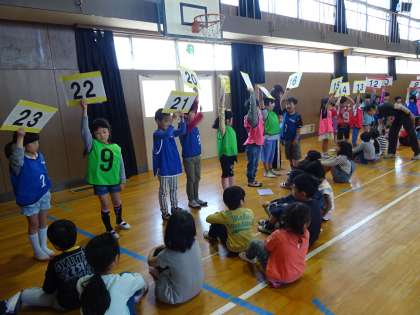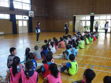 講堂に集まって班にわかれ、先生の説明を聞いた後、班ごとに学校をまわりました。