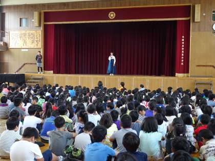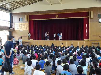 児童集会で、先日のクイズ大会の表彰式がおこなわれました。