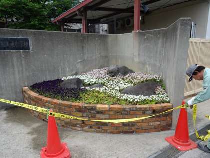 正門の花壇の補修工事がおわり、とてもきれいな花壇ができました。