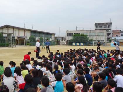 非常ベルが鳴ってから放送がながれると、先生達の指示に従って子ども達はすみやかに避難をしました。