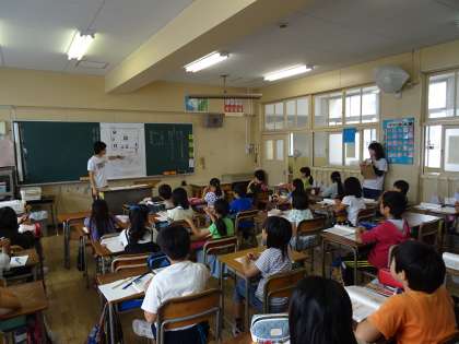 水族館の案内係になって館内を案内するといった内容ですが、子ども達は明日遠足で海遊館に行くので、より興味をもって学習に取り組んでいました。