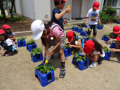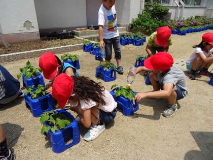 子ども達は毎日あさがおに水やりをするのを楽しんでいるようです。