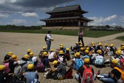 大極殿では、係りの人に解説をしてもらいながら見学をしました。