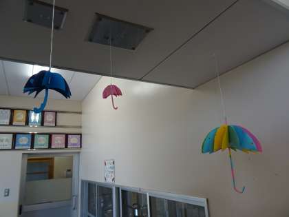 給食室には、給食調理員さんが作った飾りが飾られています。