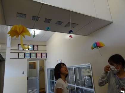 調理員さんの真心こもった飾りを子ども達は見て、とても和んでいる様子が見られます。
