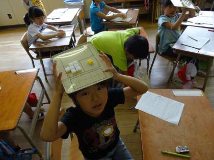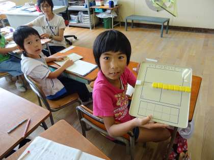 8をいくつといくつに分けることができると、子ども達はとてもいい表情で先生に見せていました。