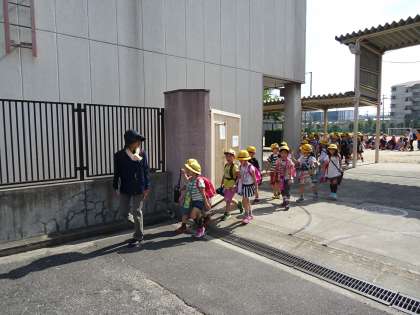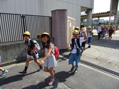 1年生も2年生もみんなそろって行くことができ、子ども達は元気よく学校を出発しました。