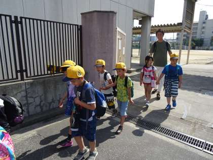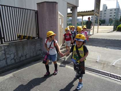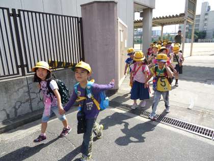 子ども達は笑顔で学校を出発しました。特に1年生の子ども達は初めての遠足なので、とても嬉しそうにしていました。