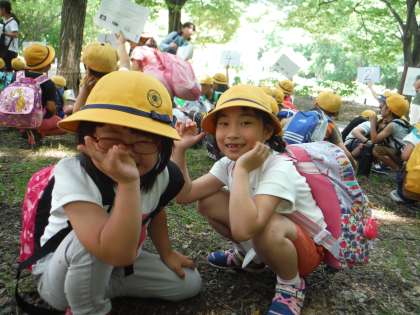 長居公園に着いてから、1年生と2年生合同のグループにわかれてオリエンテーリングをしました。