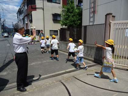 校長先生が見守る中、子ども達は笑顔で出発していきました。
