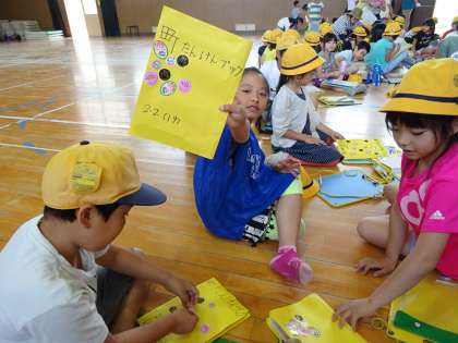 町たんけんが終わってから学校に戻ると、子ども達は一生懸命学習の振り返りをしていました。