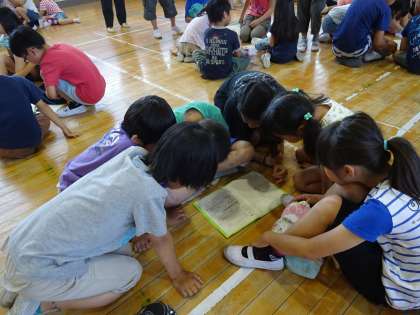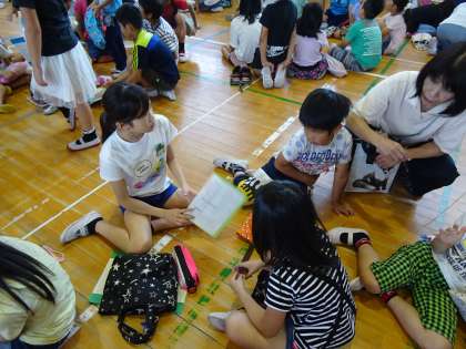担当の先生がふりかえりカードに書いたメッセージを見ながら、子ども達は清掃活動をふりかえっていました。