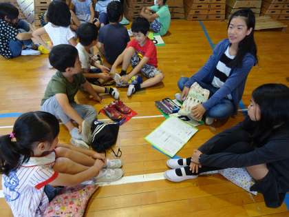 英語集会のあと、たてわり班清掃のふりかえりを各班にわかれておこないました。