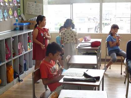 教室で将棋をしたり、リコーダーの練習をしたりなど、子ども達はそれぞれで雨の日の遊びを考えて過ごしています。