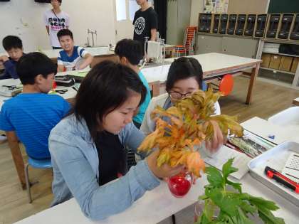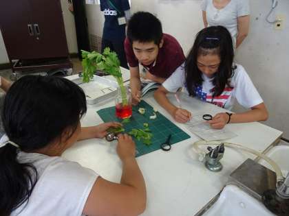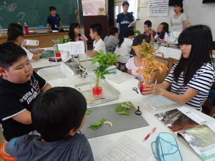 植物の水の通りに色がついているの部分を子ども達は注意深く観察していました。