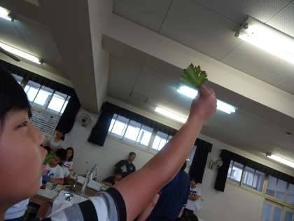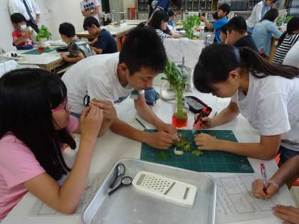 虫眼鏡を使って観察したり、光にすかして観察したりするなどして、くきや葉に見られる植物の水の通りを子ども達はしっかり見つけることができていました。