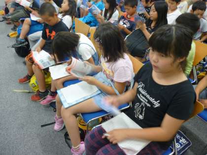 係の人から工場や車ができるまでの工程などを教えてもらい、子ども達はメモをとりながら真剣に聞いていました。積極的に質問もして、子ども達は意欲的に学習に取り組んでいました。