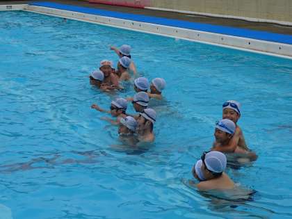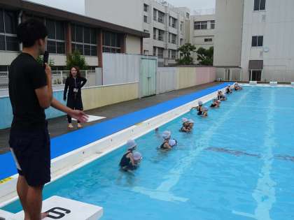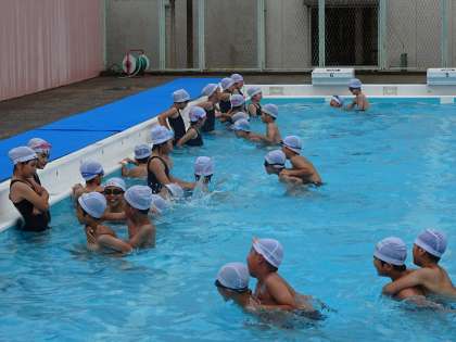 ペアでおんぶをして水中を歩く活動をしました。子ども達はとてもいい笑顔で友だちをおんぶして、楽しんでいました。