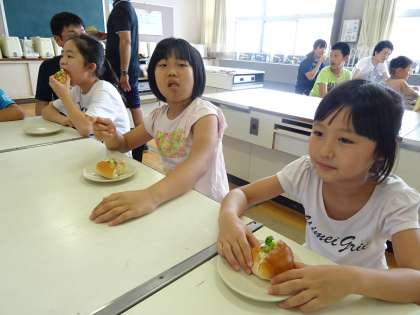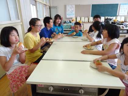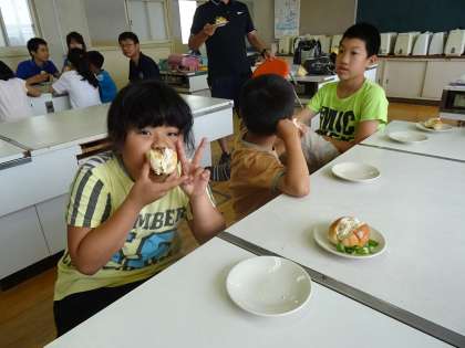 出来上がったサワークリームオニオンチキンサンドをみんなで美味しく食べました。