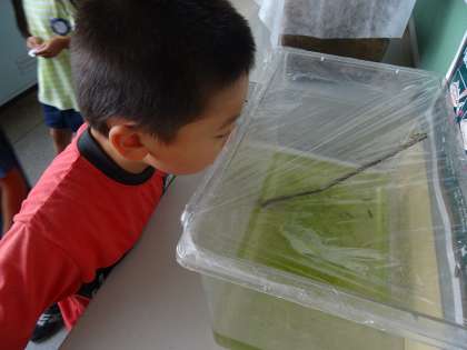 とんぼに羽化した様子を子ども達は興味津々に見ていました。