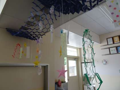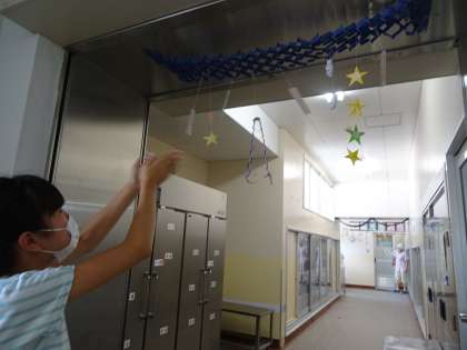 給食室の飾りを子ども達は嬉しそうに見上げていました。