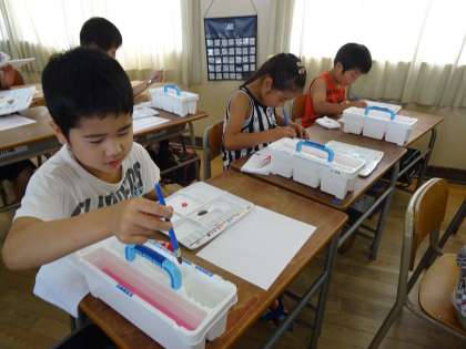 初めて絵具を使っての学習でしたが、子ども達はとても楽しそうに活動していました。