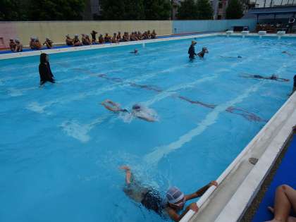 けのびやバタ足など、子ども達は何本も泳いでがんばって練習に取り組んでいました。