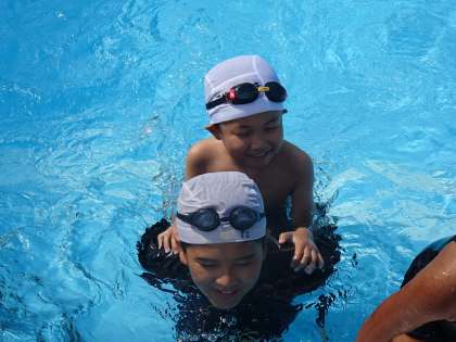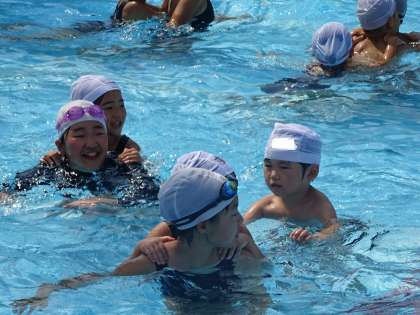 6年生が1年生をおんぶして移動するときには、みんな笑顔になっていました。