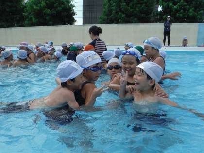1年生と6年生の交流プールは終始、笑顔がたくさん見られ、楽しい雰囲気でおこなわれました。