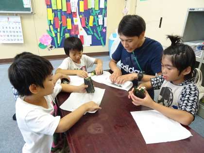 具をのせたら形をきれいに整え、完成したのりまきをみんなでおいしくいただきました。