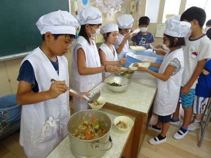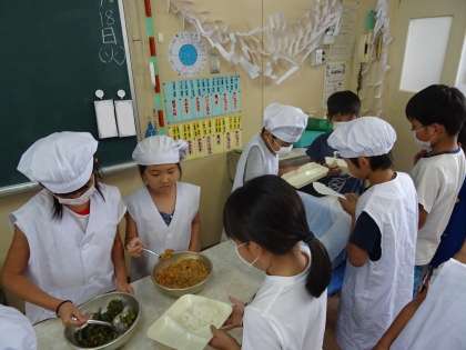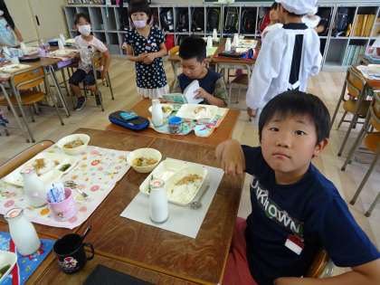 今日の給食も子ども達は協力して用意し、美味しそうに食べる様子が見られました。