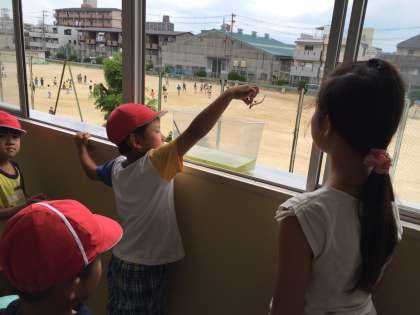 1番最後にかえったトンボを、名残惜しそうに外へ逃がしてました。