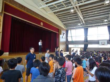 校長先生は子ども達にむけて、夏休みにがんばってほしい3つのことをお話しされました。