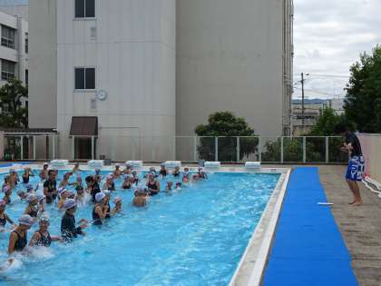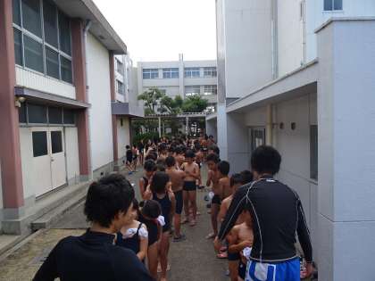 今日は高学年も低学年も100名をこえる子ども達が参加し、プール日和の中、子ども達はプールを楽しんでいました。