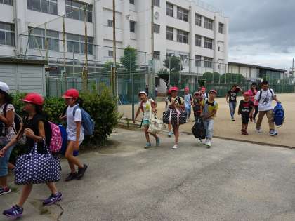 学校を出発したときの様子です。