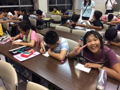 ハガキをかいている様子です。