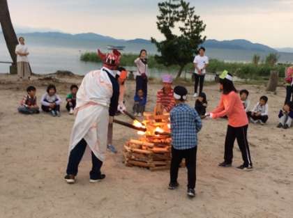 火の神様の登場に子ども達は大盛り上がりでした。