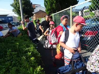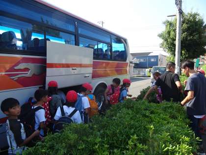 渋滞での遅れがあったものの、たくさんの保護者の方々や教職員に出迎えられ、5年生の子ども達は元気な様子で帰ってきました。