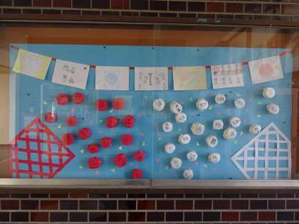 9月になって、玄関の掲示が変わりました。また、階段の掲示も変わりました。