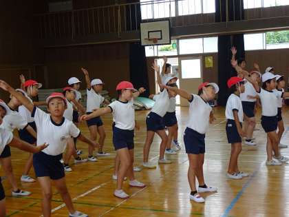 難しい振り付けがあってもリズムに合わせて動きをそろえようと子ども達はがんばっていました。今日もみるみる上達していく子ども達の様子が見られました。