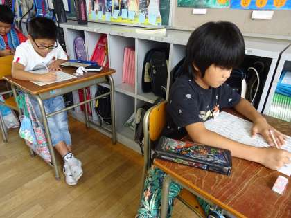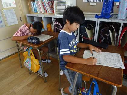 今日のテストのために何日も前から漢字の勉強に励んできた子ども達が多くいました。テスト中には、いつもに増して真剣に、そして集中して取り組む子ども達の姿が各学年で見られました。