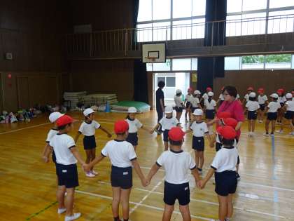 ダンスの練習につけくわえ、隊形移動の練習にも取り組み、上手に円がつくれるように自分たちで声を掛け合ってがんばっていました。